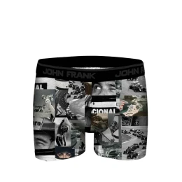 Pánské boxerky značky John Frank z vysokého podílu micromodalu. Boxerky jsou velmi příjemné na dotek a pohodlné při nošení. Pružná černá guma v pase má po obvodu logo John Frank.