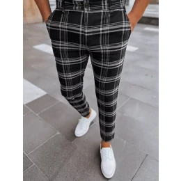Pánské černé kostkované chinos kalhoty FashionStreet UX3965