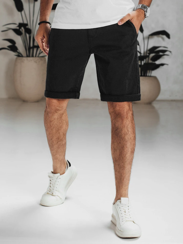 Pánské džínové šortky s elastickým pasem a nastavitelnou šňůrkou jsou dokonalou kombinací pohodlí a městského stylu. Klasická délka pod kolena a ohrnuté nohavice jim dodávají ležérní vzhled. Skvěle se hodí na jaro a léto.