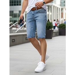 Pánské džínové šortky s páskem před kolenem modré SX2579