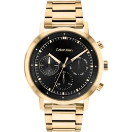 Model CALVIN KLEIN s chronografem je určen pro muže, kteří oceňují funkčnost v elegantním provedení. Černý ciferník se třemi subciferníky vyzařuje technickou přesnost a třídu, zatímco kontrastní detaily upoutávají pozornost a zdůrazňují dynamický charakter hodinek. Máte zde vše: 24hodinový čas, datum a den v týdnu - uzavřené v dokonale komponované podobě. Vzhled doplňuje masivní zlatý náramek se širokými články. Jsou to hodinky, které se hodí jak do kanceláře, tak po pracovní době.