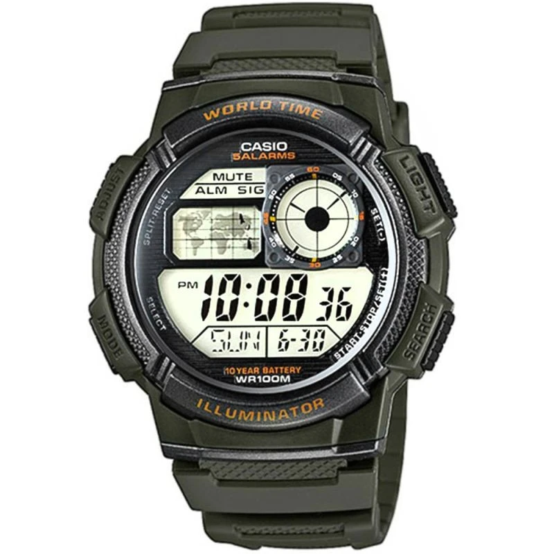 Model CASIO s funkcí Multi Time, světovým časem, stopkami, budíkem x 5 a časovačem - to vše 10 let na jednu baterii. Hodinky Casio AE-1000W jsou hodinky, které s vámi drží krok - ciferník inspirovaný kokpitem letadla jim dodává robustní, technický vzhled, který podtrhuje mužský styl a dynamický životní styl. Díky mapě světa a funkci světového času můžete na první pohled zkontrolovat čas v různých zónách, což je ideální volba pro cestovatele a profesionály pracující v zahraničí. Analogový displej LC zajistí, že budete mít vždy po ruce čas ve svém domovském městě, a vodotěsnost do 100 metrů umožňuje hodinky volně používat i v drsnějších podmínkách. Jsou to hodinky pro muže, kteří očekávají víc - přesnost, odolnost a styl.