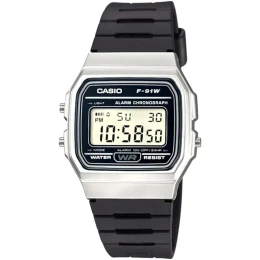 CASIO F-91W to kultowy model unisex, który dzięki swojej prostocie i niezawodności zdobył status ikony w świecie zegarków cyfrowych. Lekki jak piórko (zaledwie 21 g!), a jednocześnie niezawodny – Casio F-91W to ikona stylu i funkcjonalności, która od dekad nie wychodzi z mody. Prosty, ale genialny – czytelny wyświetlacz LCD i klasyczne podświetlenie LED sprawiają, że zawsze masz kontrolę nad czasem, niezależnie od warunków. Wbudowany stoper 1/100 sekundy to idealny towarzysz codziennych aktywności, a alarm i sygnał godzinowy pomagają trzymać się harmonogramu. Automatyczny kalendarz eliminuje problem ręcznego ustawiania daty, a wytrzymała konstrukcja i wodoodporność sprawiają, że ten zegarek sprosta każdemu wyzwaniu dnia codziennego. Minimalizm, retro vibe i niezawodność – Casio F-91W to więcej niż zegarek, to ponadczasowy symbol prostoty i funkcjonalności, który pasuje do każdego stylu!