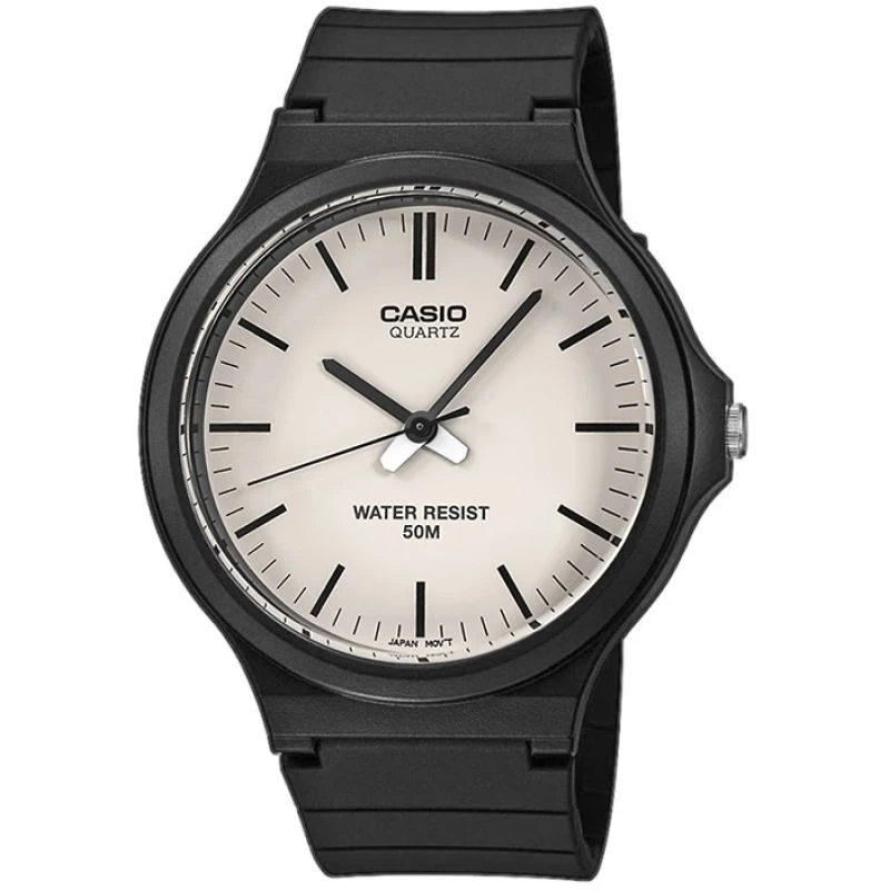 Pánské hodinky CASIO MW-240 kombinují minimalismus, funkčnost a pohodlí v mužném designu. Díky lehké konstrukci hodinek (pouhých 35 g!) jsou na zápěstí téměř nepostřehnutelné. Pružný matný řemínek z pryskyřice se přizpůsobí vašim pohybům, je odolný proti opotřebení a připravený na každou situaci - od schůzky až po trénink. Velké kontrastní indexy vám umožní zkontrolovat čas na první pohled. Odolné sklíčko z pryskyřice zaručuje odolnost proti každodennímu opotřebení a vodotěsnost 5 BAR zajistí, že stříkající voda, déšť ani rychlá sprcha nebudou problém.