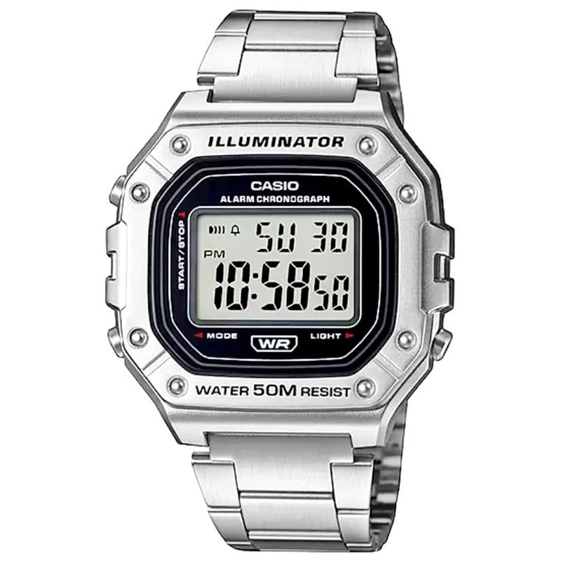 Casio W-218HD-1AVDF to esencja klasycznego stylu Casio w nowoczesnym, sportowym wydaniu: wyrazisty, prostokątny wyświetlacz LCD w solidnej kopercie, czytelny na pierwszy rzut oka, z subtelnymi akcentami, które dodają mu świeżości i uniwersalności. Zegarek został stworzony do codziennego tempa: wodoszczelność 50 m, podświetlenie LED dla pewnego odczytu po zmroku, 7-letnia bateria dla długiej niezawodności, a także praktyczny zestaw funkcji – stoper 1/100 s (do 60 min), alarm dzienny i sygnał pełnej godziny, automatyczny kalendarz oraz format 12/24 h. Lekki i wygodny,zszkiełkiem z tworzywa (Resin Glass) i wytrzymałą bransoletą, świetnie sprawdzi się zarówno na treningu, jak i w codziennych stylizacjach. Jeśli szukasz bezkompromisowej prostoty połączonej z legendarną trwałością Casio, będzie strzałem w dziesiątkę.