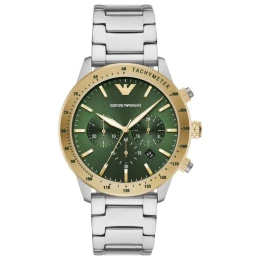 Pánské hodinky Emporio Armani Mario AR11454 jsou elegantní a všestranný chronograf, který kombinuje klasiku s moderním charakterem. Pouzdro z ušlechtilé oceli harmonicky spolupracuje s masivním ocelovým náramkem a vytváří tak výrazný a zároveň univerzální vzhled. Zelená barva ciferníku, kontrastující s ručičkami a indexy, stejně jako okénko s datem, podtrhují precizní charakter tohoto modelu. Srdcem hodinek je quartzový strojek, který zaručuje spolehlivý chod bez nutnosti každodenního seřizování, zatímco funkce chronografu umožňuje měřit krátké časové intervaly s velkou přesností. Model podporuje vodotěsnost 3 ATM, která poskytuje ochranu před náhodným postříkáním při každodenním používání, což z něj činí vynikající volbu pro každodenní i formálnější příležitosti.