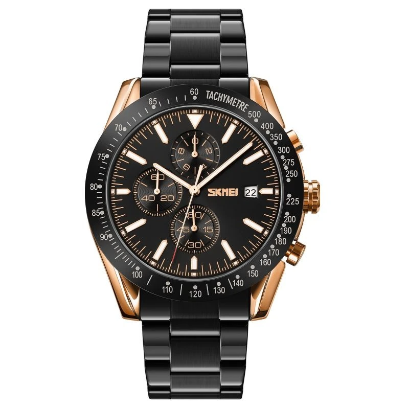Náramky hodinek Skmei, vyrobené z nejkvalitnější nerezové oceli, v sobě spojují surovou pevnost s poutavou elegancí. Jejich robustní konstrukce je nejen symbolem spolehlivosti, ale také jistotou, že hodinky zůstanou pevně na zápěstí bez ohledu na výzvy dne. Přesné a bezpečné zapínání.