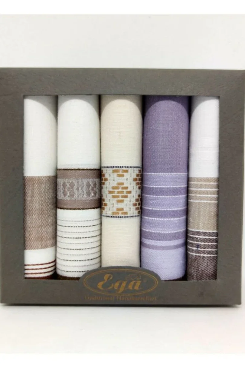 Kapesník z hladké, jemně tkané bavlny, lemovaný úzkým plochým švem, je nepostradatelnou součástí výbavy každého gentlemana. Je znakem elegance a atributem hygieny. Vybírat můžeme z široké škály vzorů a barev. Krásně zabalené budou vhodnou nabídkou na dárek. Sada se skládá z 5 kapesníků. Složení: 100% bavlna, rozměry: 40 cm x 40 cm.