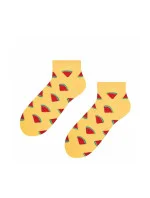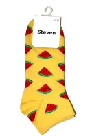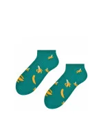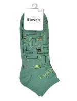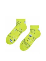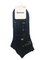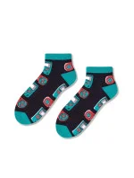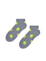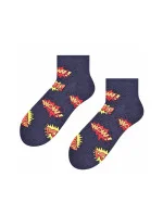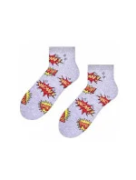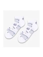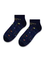 Pánské kotníkové ponožky s přídavkem lycry. Mají ploché švy a nestahující lem. Originální vzor se skvěle hodí ke sportovnímu stylu.