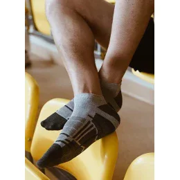 Pánské kotníkové ponožky s přídavkem lycry. Mají ploché švy a nestahující lem. Originální vzor se skvěle hodí ke sportovnímu stylu.