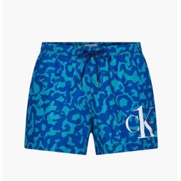 Pánské plavecké šortky se stahovací šňůrkou KM0KM00813 0H8 zelená-vzor - Calvin Klein