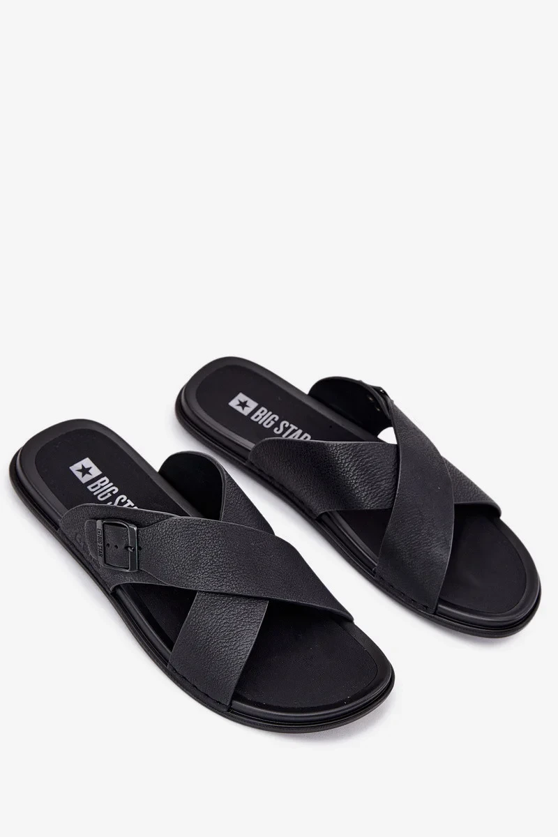 Pánské kožené pantofle s přezkou Big Star – černé