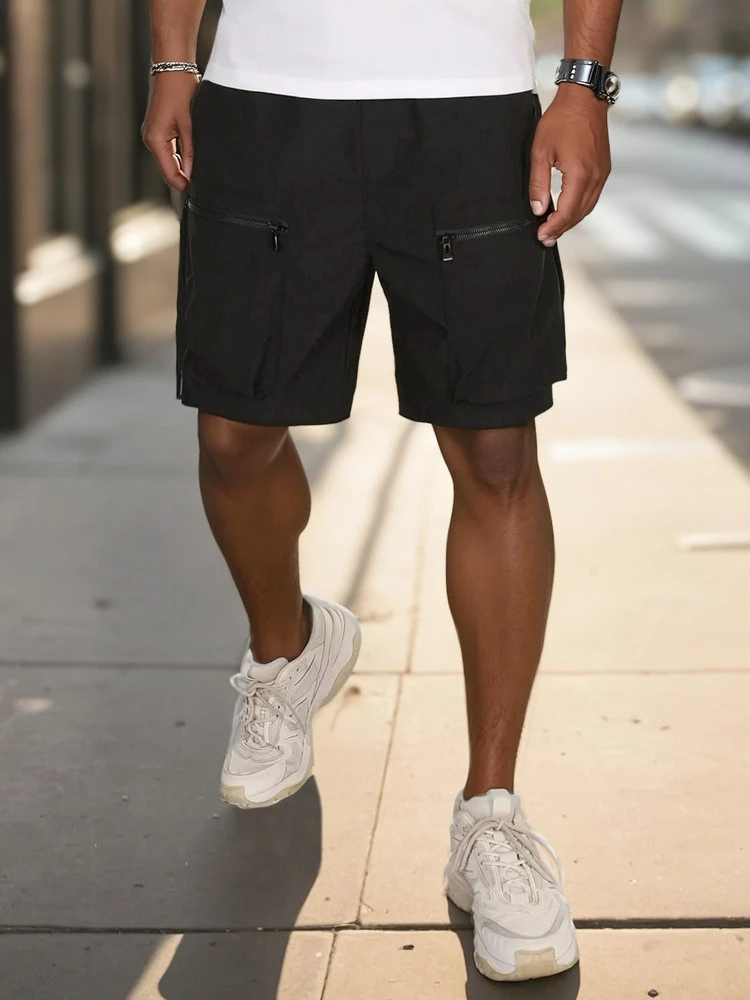 Pánské bojové šortky s elastickým pasem a stahovací šňůrkou v pase pro pohodlí při každodenních aktivitách. Jsou vyrobeny z tkaniny příjemné na dotek a nabízejí volnost pohybu. Dvě přední kapsy, dvě boční kapsy a dvě zadní kapsy včetně zapínání na zip. Ideální pro jarní i letní dny.