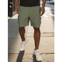 Pánské bojové šortky z látky příjemné na dotek jsou ideální volbou pro teplejší dny. Model je vybaven elastickým pasem se zavazováním pro větší pohodlí a ozdobnými kapsami na přední straně a na bocích pro uložení nezbytností. Moderní nádech dodává ozdobný zip. Ideální na léto a jaro.