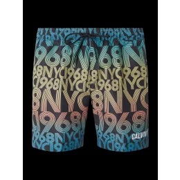 Pánské plavky SHORT DRAWSTRING KM0KM00968 0GJ černá s barevným vzorem - Calvin Klein