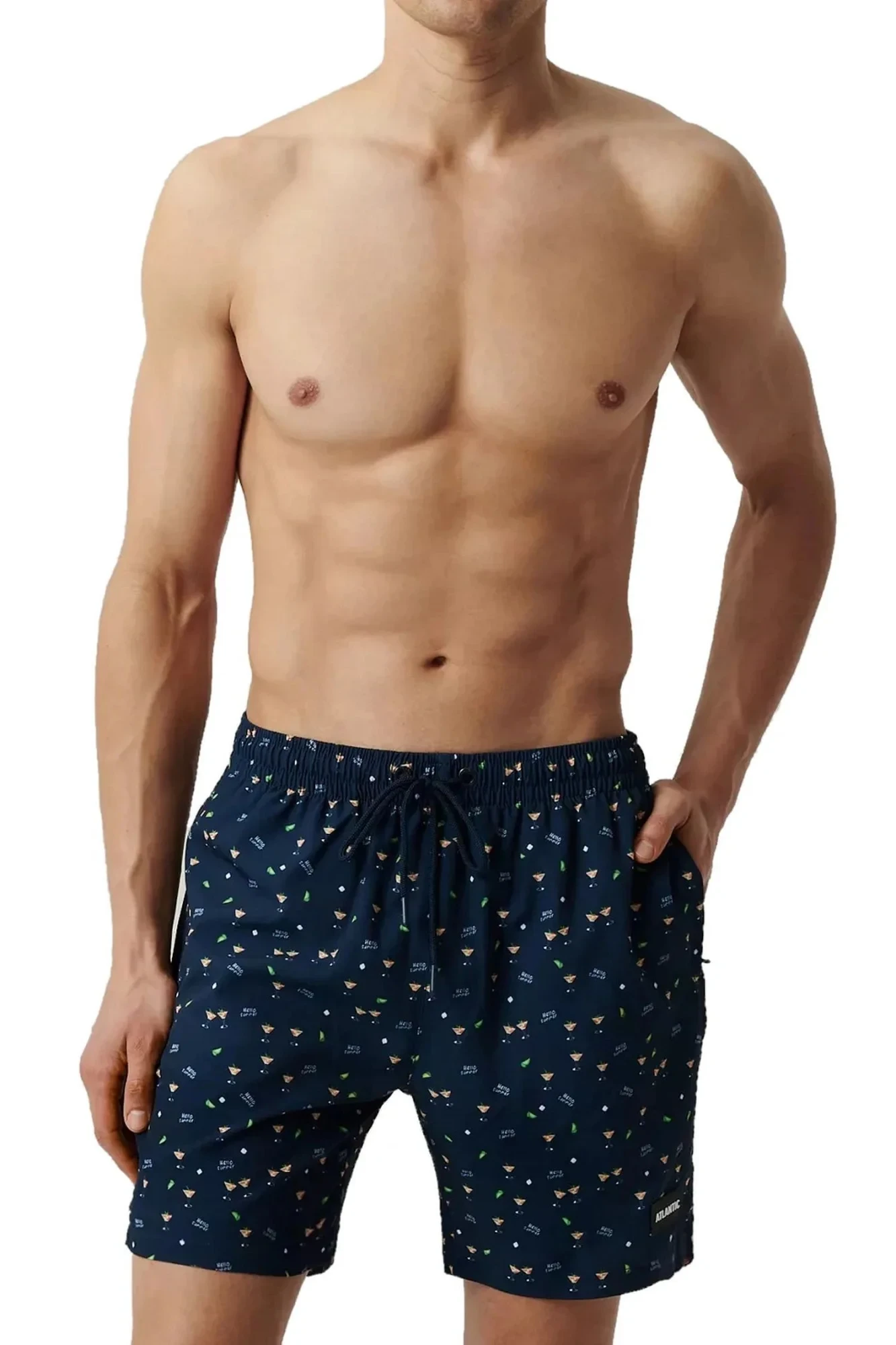 Pánské plavky 221 blue Atlantic - tmavě modrá barva - se vzorem - materiál s technologií 4 way stretch - v pase šňůrky k zavazování - na bocích kapsy - rychleschnoucí materiál