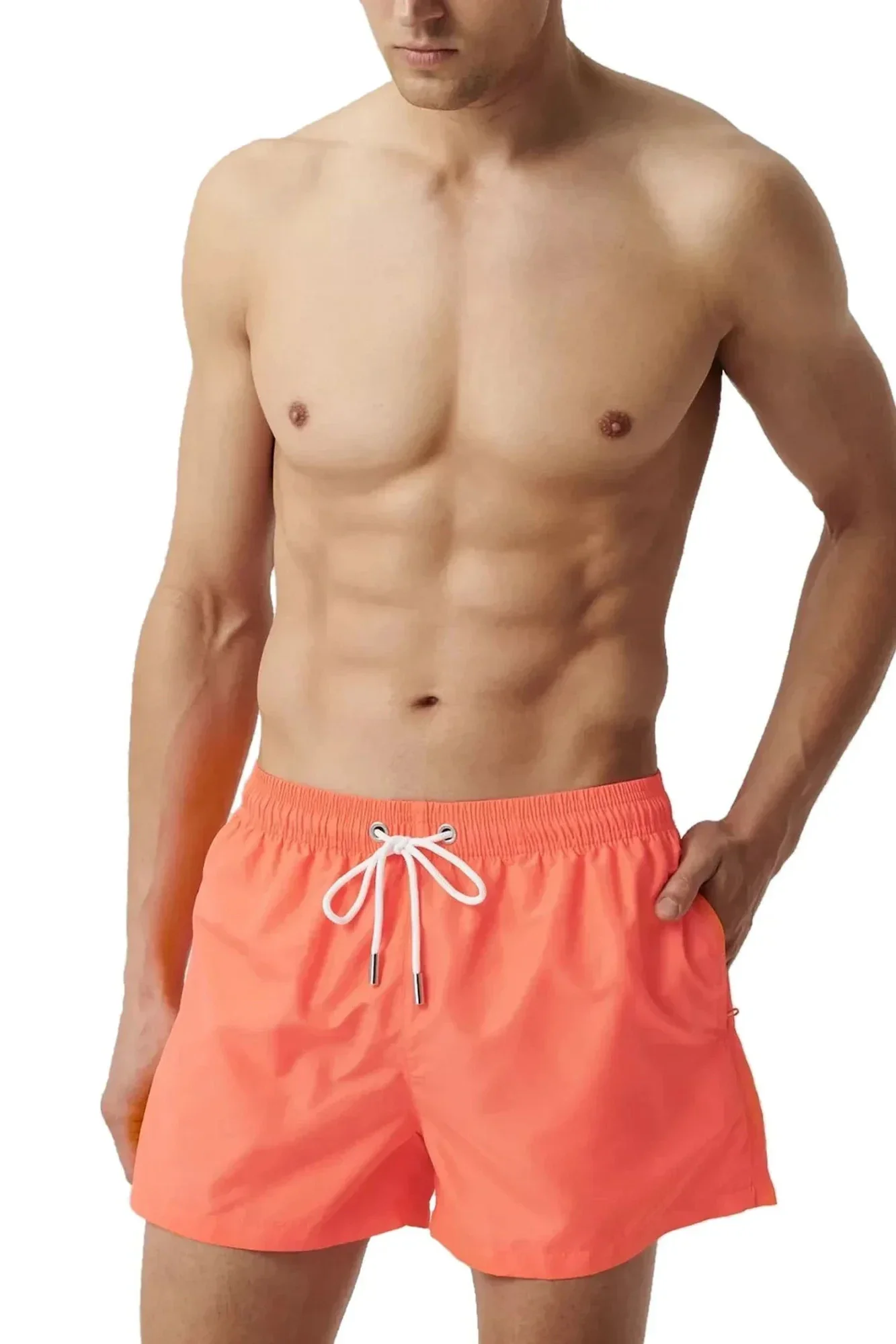 Pánské plavky 222 coral Atlantic - korálová barva - materiál typu Paper touch - v pase šňůrky k zavazování - na bocích kapsy - prodyšná podšívka - rychleschnoucí materiál - logo Atlantic