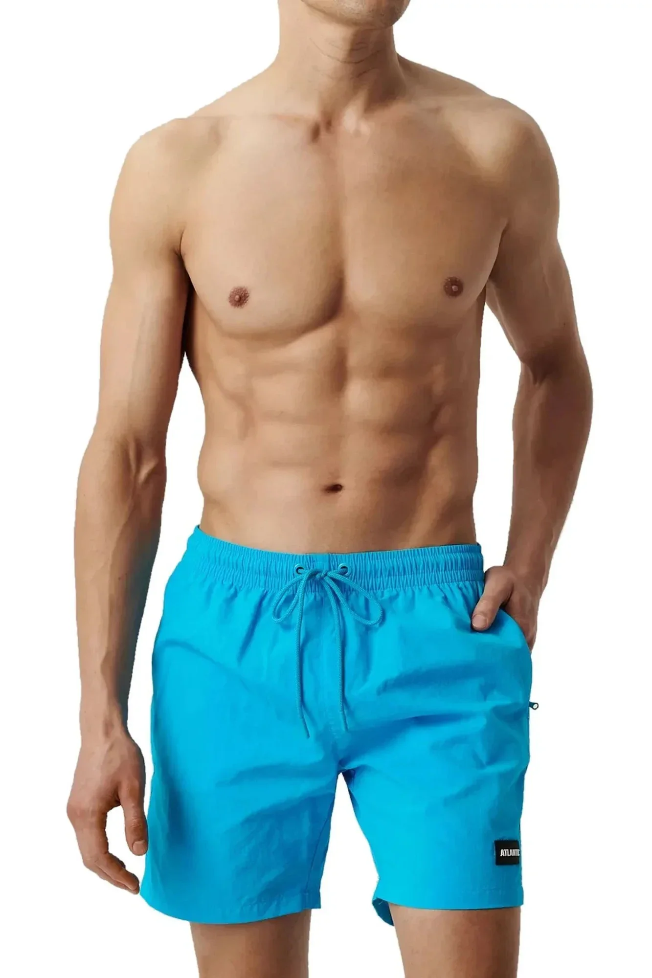 Pánské plavky 225 turquise Atlantic - tyrkysová barva - materiál typu Paper touch - v pase šňůrky k zavazování - na bocích kapsy - prodyšná podšívka - rychleschnoucí materiál - logo Atlantic