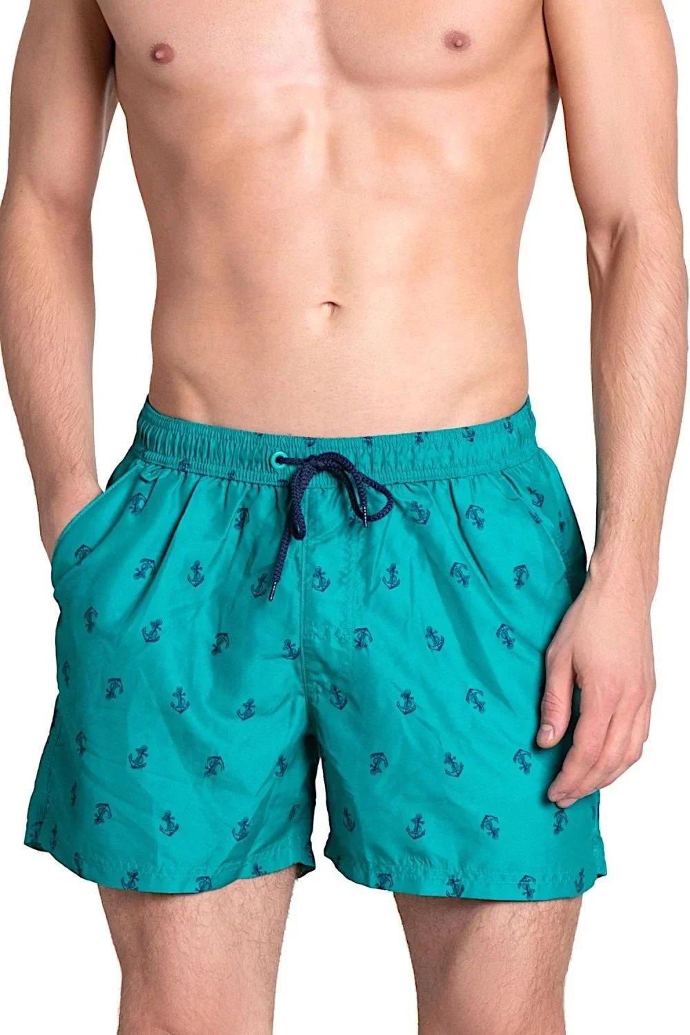 Pánské plavky 38861 Ship HENDERSON - zelená barva - potisk kotvy - v pase šňůrka na zavazování - na bocích kapsy - na zadní části mají kapsu - krátká doba uschnutí - zevnitř jsou z prodyšné síťoviny