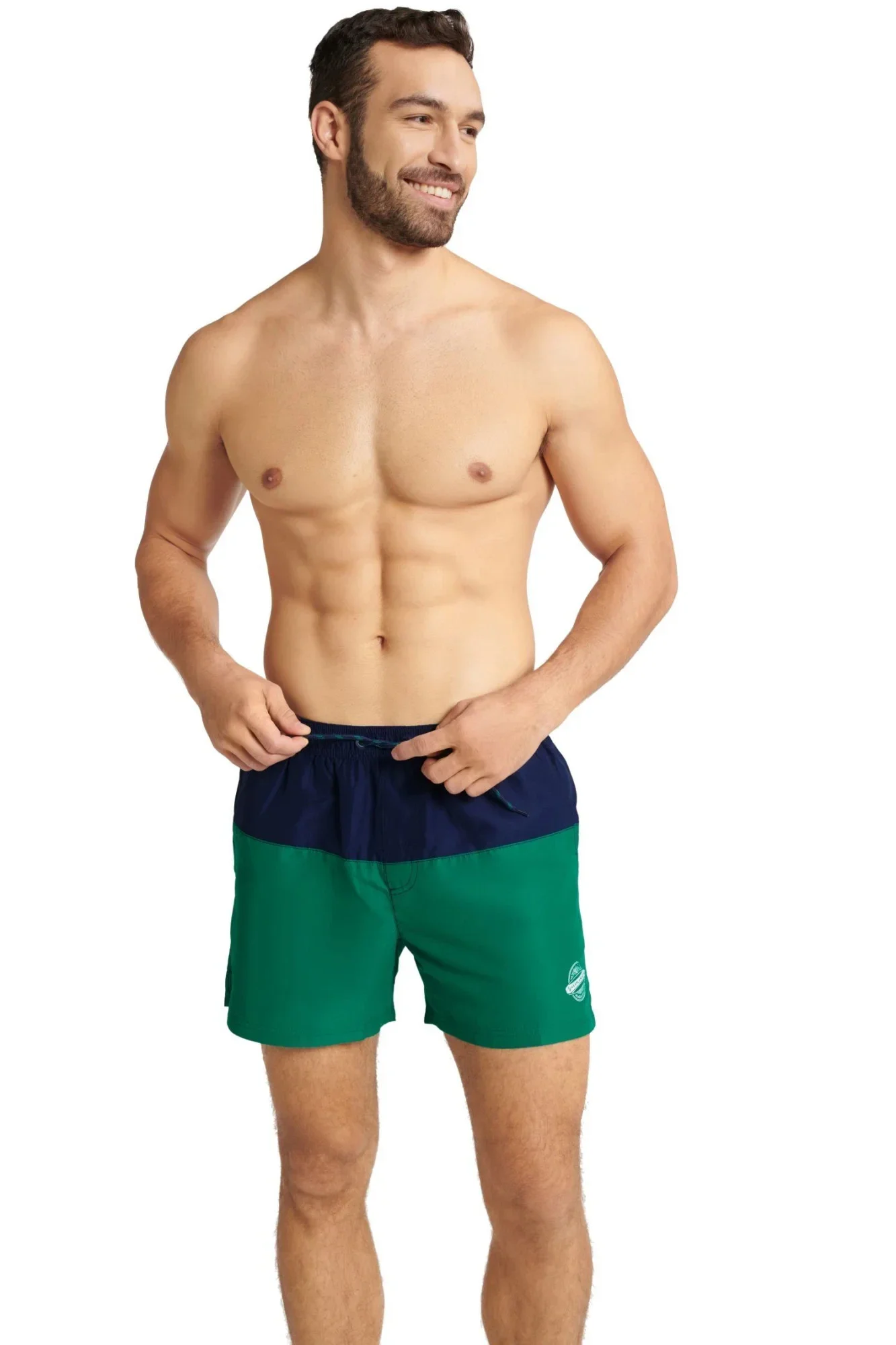 Hladké pánské plavky 40780 Henderson - v pase mají šňůrku k zavazování - na bocích jsou kapsičky - model má uvnitř slipy z prodyšné síťoviny