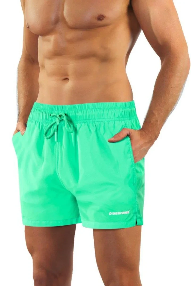 Plavecké šortky s nastavitelným elastickým pasem. Tři kapsy: dvě boční kapsy, vnitřní ze síťoviny, a jedna zadní látková kapsa se zapínáním na suchý zip. Vnitřní strana šortek z měkké síťoviny.