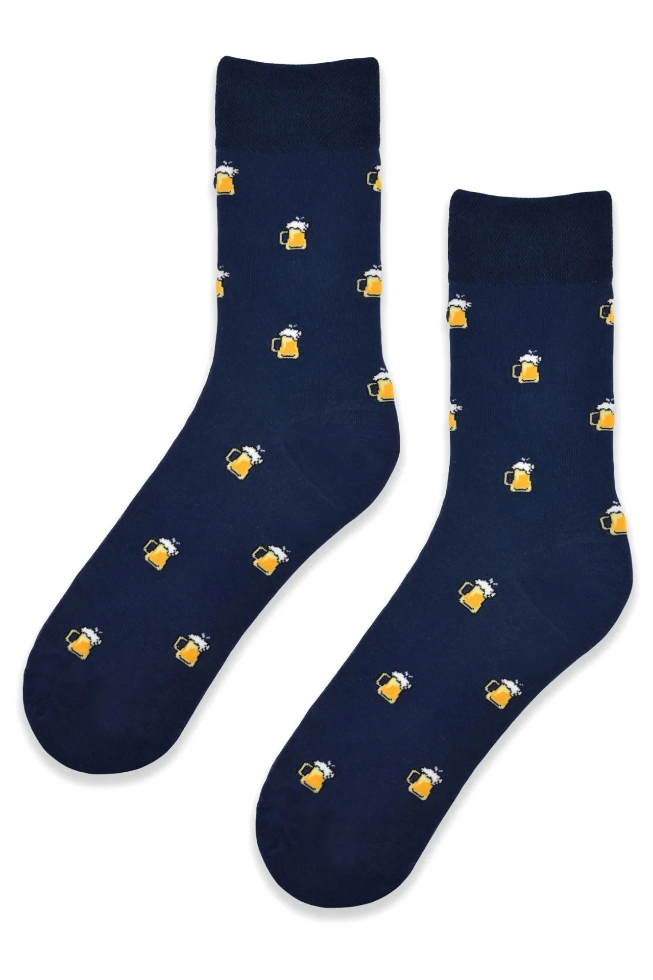 Pánské ponožky 002 U 16 NOVITI - tmavě modrá barva - z vysoce jakostní bavlny - se vzorem - netlačí