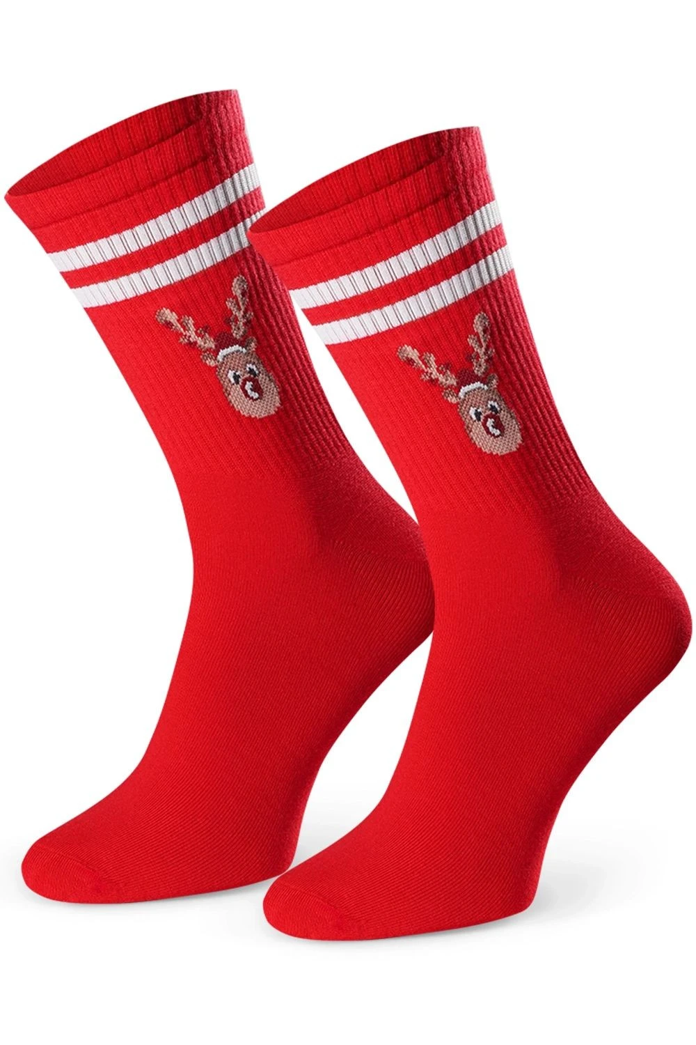 Pánské ponožky 136 152 Steven - červená barva - z vysoce jakostní bavlny - s protiskluzovou podešví - měkké, teplé, pohodlné a ideální pro chladné dny - vánoční kolekce