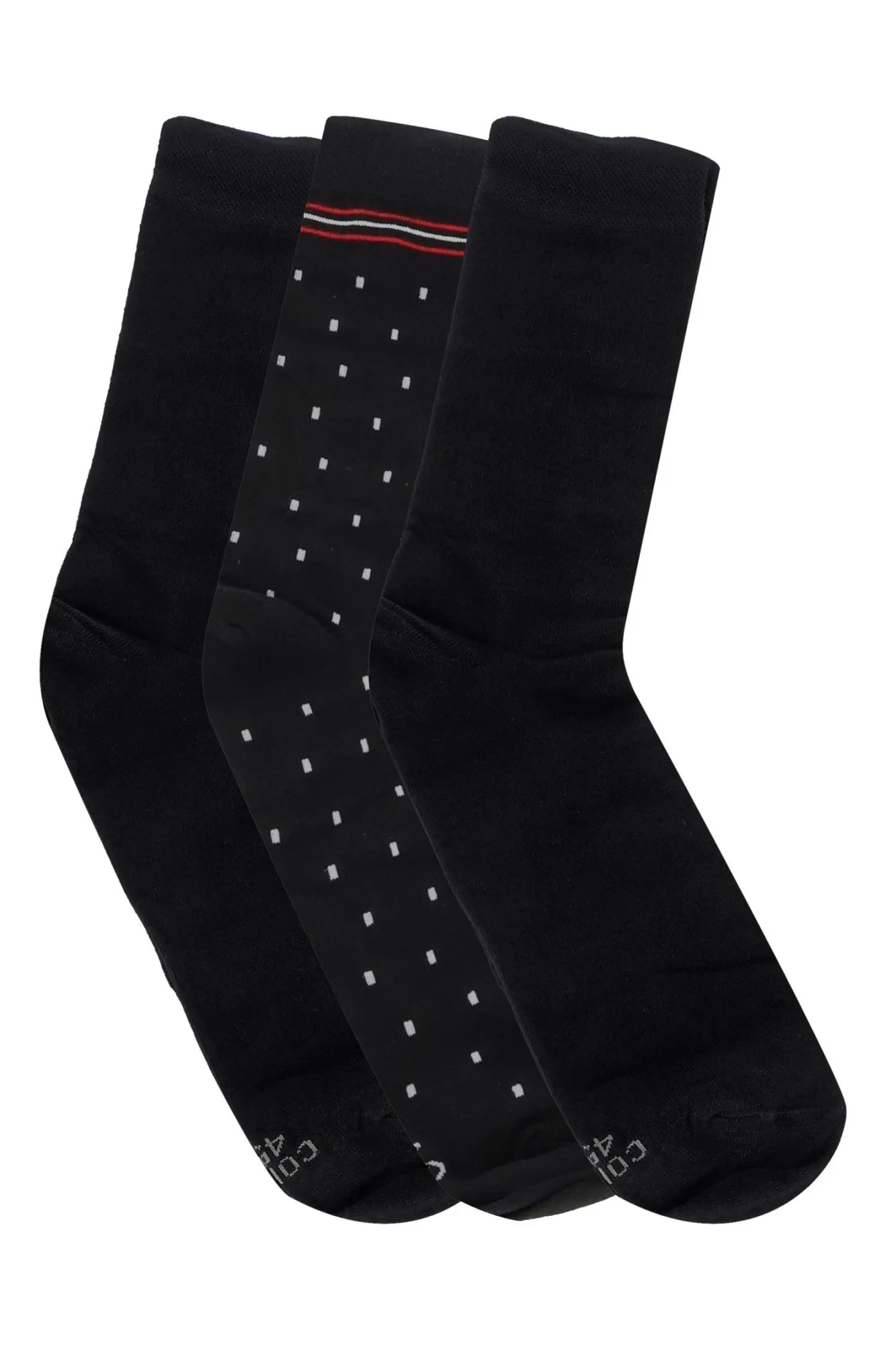 Pánské ponožky 3 pack Premium 3 pack black CORNETTE - černá barva - z vysoce jakostní bavlny - 3 kusy různých vzorů - ploché švy - netlačí
