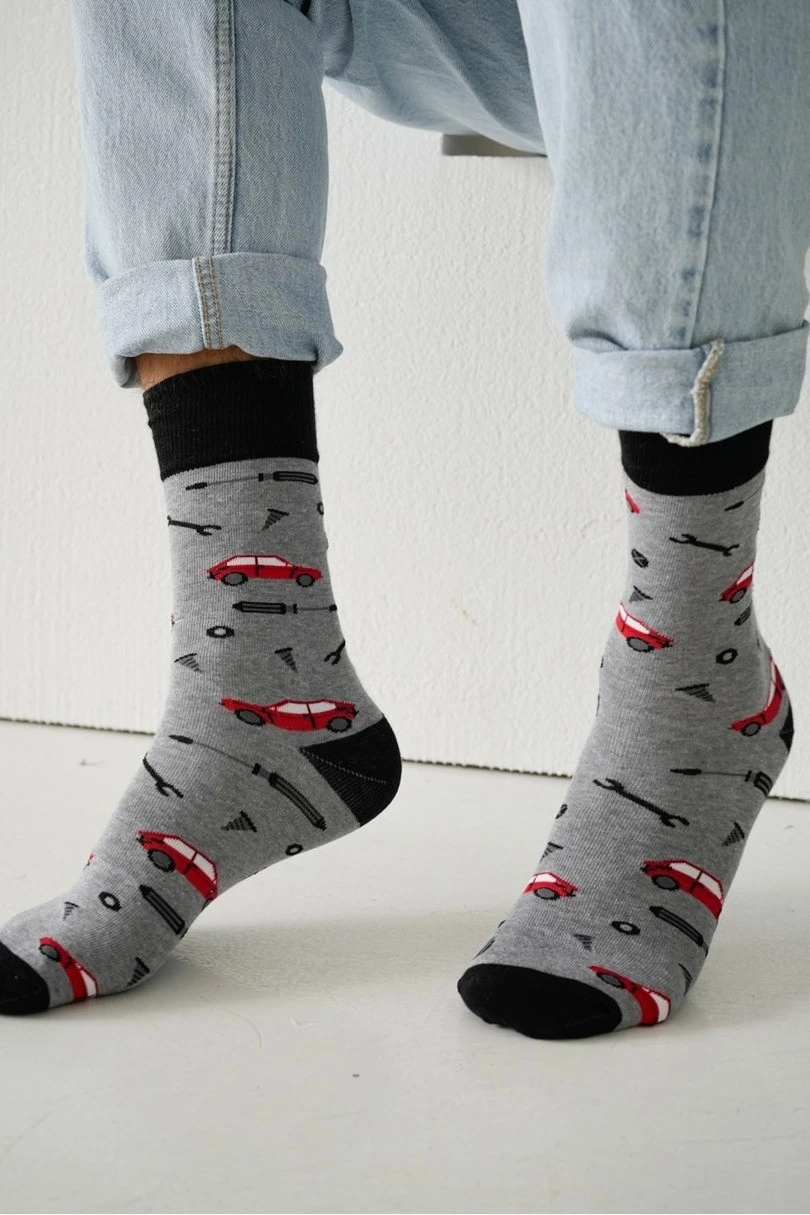 Pánské ponožky Cars and Tools jsou ideální volbou pro milovníky motorismu a kutilství. Mají originální design, který jim dodává charakter a zdůrazňuje vášeň pro techniku. Jsou vyrobeny z měkké, prodyšné bavlny a zaručují pohodlí po celý den. Díky pružné struktuře se dokonale přizpůsobí noze a zachovají si svůj tvar i po mnoha vypráních. Jedná se o skvělý nápad na dárek pro každého fanouška aut a dílenského klimatu.