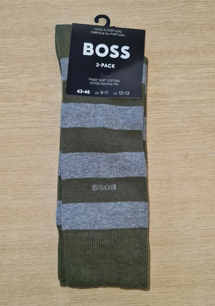 Pánské vyšší trendy ponožky od značky BOSS v khaki barvě. Cena je za 2 páry ponožek, jedny jsou pruhované a druhé jednobarevné. Ponožky jsou vyrobeny z příjemného materiálu a mají zesílenou patu.