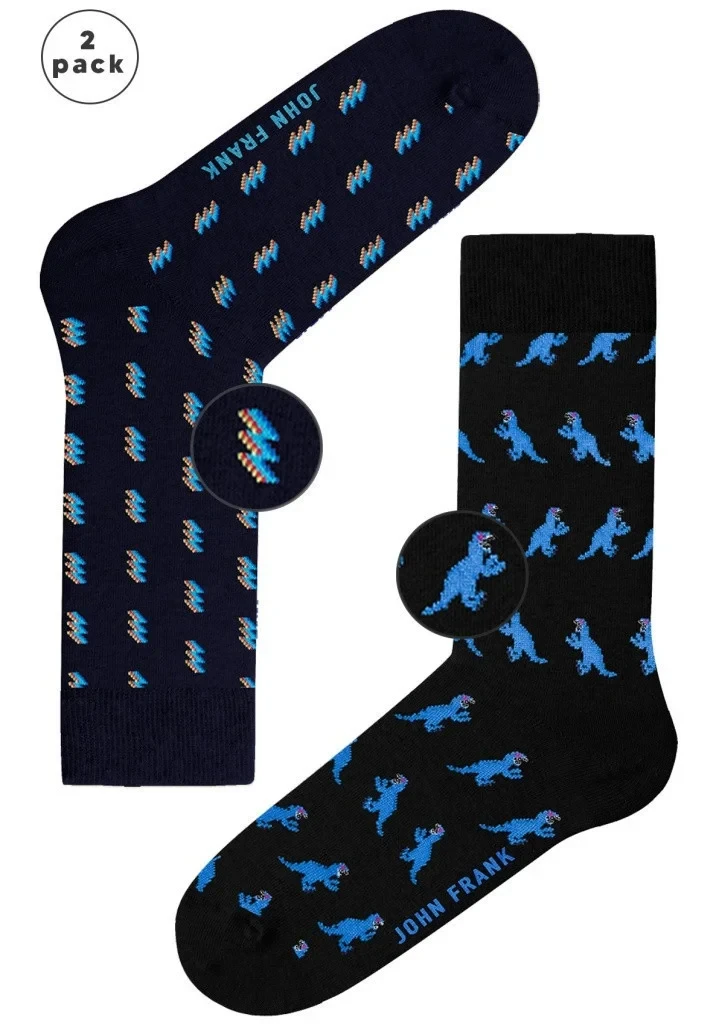Pánské vyšší trendy ponožky značky John Frank. Cena je za 2 páry ponožek dle obrázku. Velikost je univerzální 40-45.