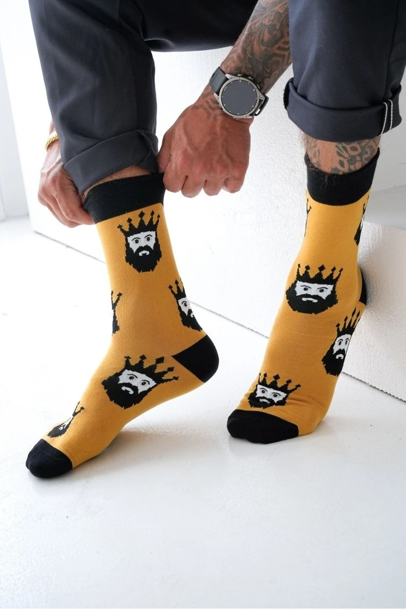 Pánské ponožky Crólowie jsou návrhem pro muže, kteříórádi kombinují pohodlí s trochou charakteru. Jsou vyrobeny z vysoce kvalitní bavlny a poskytují pohodlí a prodyšnost po celý den. Elastický materiál se dokonale přizpůsobí chodidlu a zaručuje volnost pohybu a odolnost. Jemný, stylový vzorór dodá vašemu každodennímu stylingu jedinečný nádech – ideální jak do práce, tak na běžné nošení.