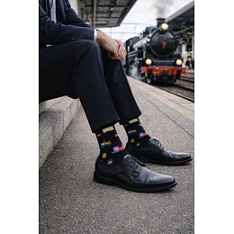 Pánské ponožky Locomotives 0125.115 značky Milena jsou stylové ponožky do obleku s originálním železničním motivem. Vzor s lokomotivami jim dodává jedinečný charakter a dělá z nich zajímavý doplněk pro muže, kteří rádi vynikají detaily ve svém stylingu.
