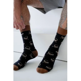 Pánské ponožky Pánské ponožky jsou skvělou volbou pro muže se smyslem pro humor a odstupem k sobě samým. Vyrovná se jim originální, vtipný vzor, který dodá charakter každému outfitu. Jsou vyrobeny z kvalitní bavlny s přídavkem polyamidu a elastanu, zaručují měkkost, prodyšnost a dokonalé přilnutí k noze. Budou perfektní jak v práci, tak během volného času – všude tam, kde záleží na pohodlí a stylu.