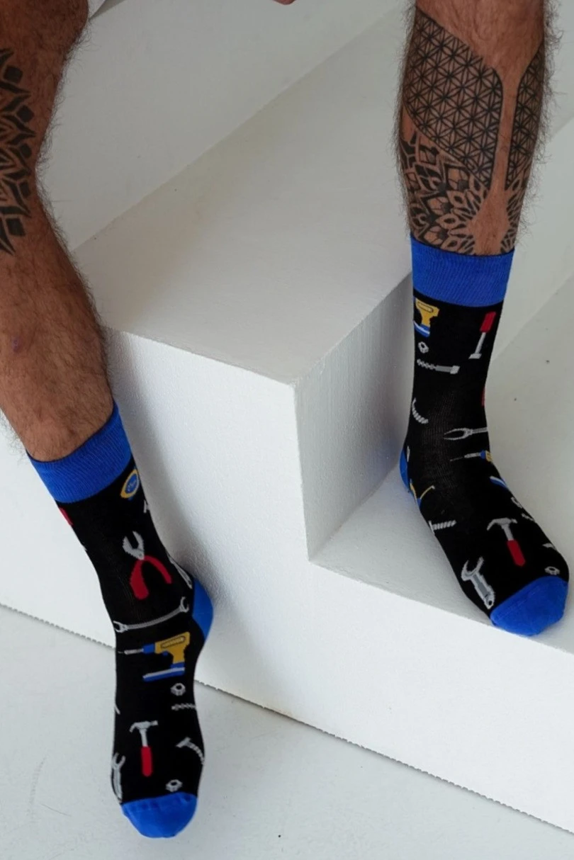Pánské ponožky Tools 0125.089 jsou ideální volbou pro muže, kteří ocení praktický styl a originální doplňky. Vzorovaný motiv nářadí jim dodává charakter a dokonale podtrhuje zájmy spojené s kutilstvím, technikou nebo fyzickou prací. Vysoký obsah bavlny zajišťuje pohodlí, měkkost a dobrou cirkulaci vzduchu, díky čemuž jsou ponožky vhodné pro celodenní nošení. Přídavek elastanu zaručuje dokonalé přizpůsobení a polyamid zvyšuje odolnost výrobku. Ideální pro každodenní nošení, do práce nebo jako praktický dárek.