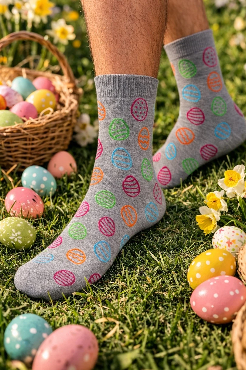 Pánské ponožky MILENA 0125.142 Easter egg jsou jedinečným modelem inspirovaným sváteční atmosférou Velikonoc. Barevný vzor s velikonočními vajíčky dodává ponožkám radostný a originální charakter, díky němuž jsou zajímavým akcentem v každodenních stylizacích a skvělým nápadem na dárek během vánočního období.