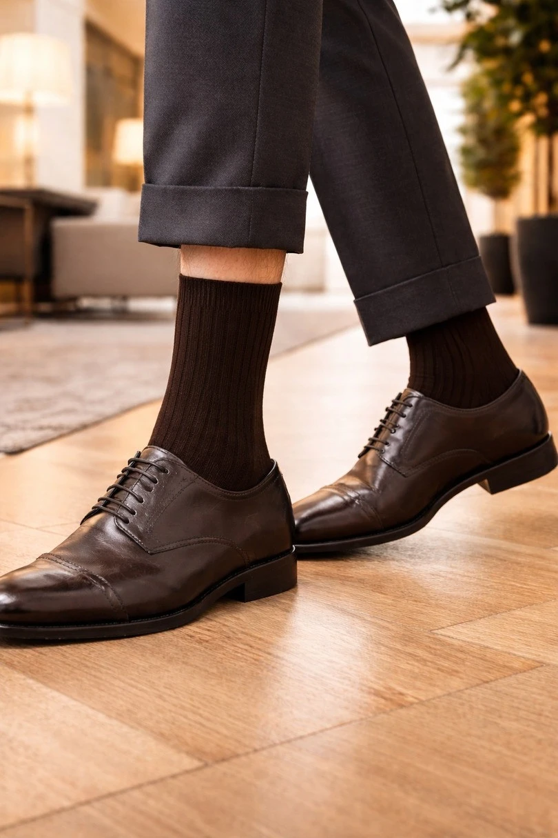 S těmito pánskými ponožkami do obleku z klasického žebrovaného úpletu dodáte každému outfitu nádech elegance. Jsou vyrobeny z vysoce kvalitních a prodyšných materiálů, takže se pohodlně nosí po celý den - ať už v kanceláři, nebo při zvláštních příležitostech. Elastický lem udrží ponožky pevně na svém místě a díky módním barvám je můžete sladit s oblekem, chinos kalhotami nebo elegantními volnočasovými kalhotami. Jsou ideální volbou pro muže, kteří oceňují styl, pohodlí a dokonalé dotažení každého detailu.