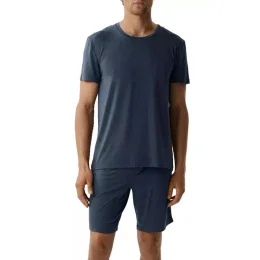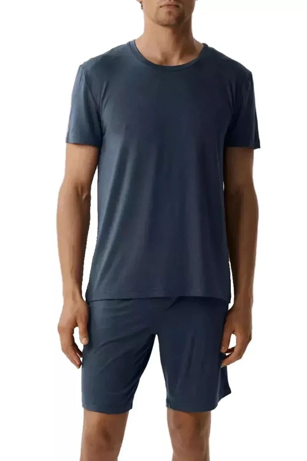 Pánské pyžamo 005 denim Atlantic - z vysoce jakostní viskózy - modré tričko s krátkými rukávy zakončené manžetou - kraťasy modré barvy - v pase širší guma