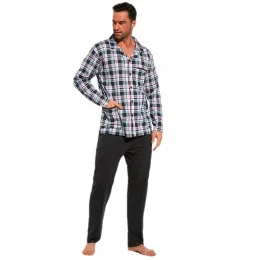 Pánské pyžamo 114/53 Cornette - je vyrobené z velmi kvalitní bavlny - vzorovaná košile s dlouhými rukávy a kapsami - zapínání na knoflíky - pohodlné jednobarevné dlouhé kalhoty