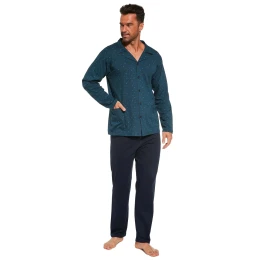 Pánské pyžamo 114/64 CORNETTE - z vysoce jakostní bavlny - tmavě modrá vzorovaná košile s dlouhými rukávy a kapsami - zapínání na knoflíky - pohodlné jednobarevné dlouhé kalhoty