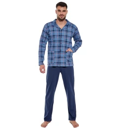 Pánské pyžamo 114/68 CORNETTE - z vysoce jakostní bavlny - světle modrá vzorovaná košile s dlouhými rukávy a kapsami - zapínání na knoflíky - pohodlné jednobarevné dlouhé kalhoty