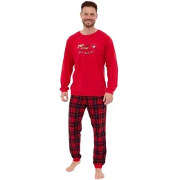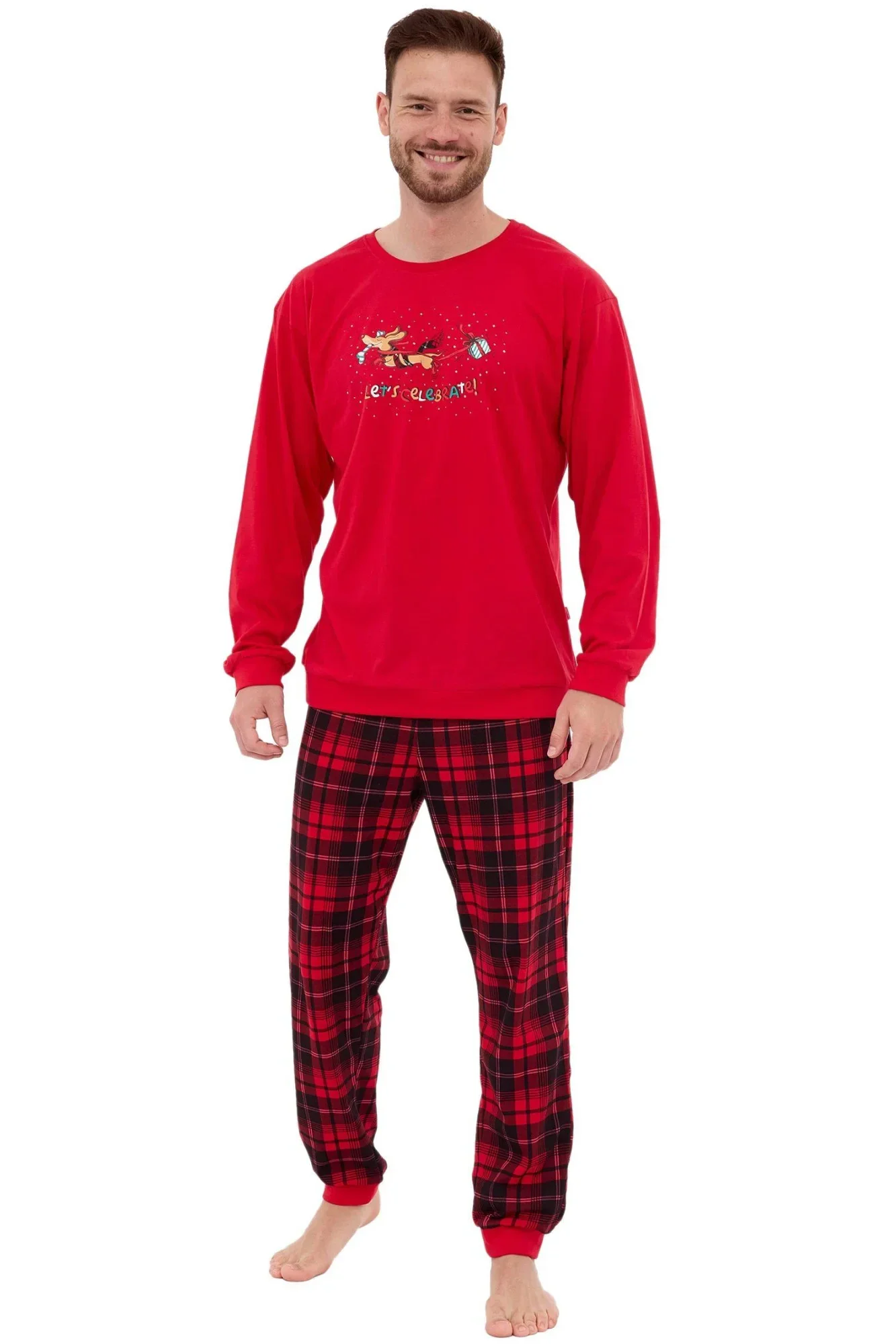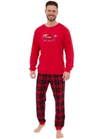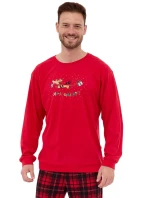 Pánské pyžamo 115/255 Celebrate CORNETTE - z vysoce jakostní bavlny - červené tričko s dlouhými rukávy - zdobené potiskem na přední straně - dlouhé kárované kalhoty - vánoční kolekce
