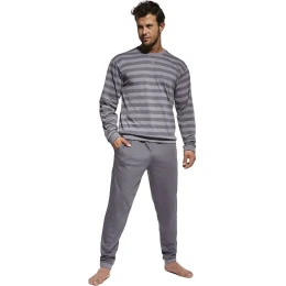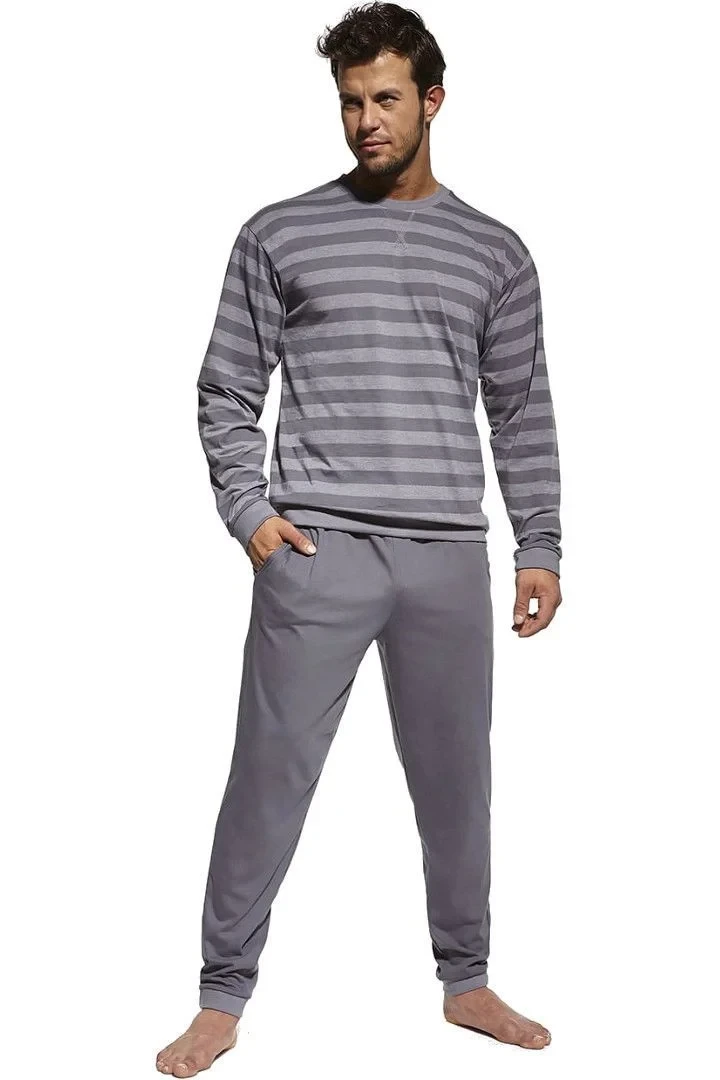 Pánské pyžamo 117/160 Losse 9 CORNETTE - je vyrobené z velmi kvalitní bavlny - grafitové tričko s dlouhými rukávy - ozdobené pruhy - pohodlné jednobarevné dlouhé kalhoty