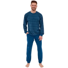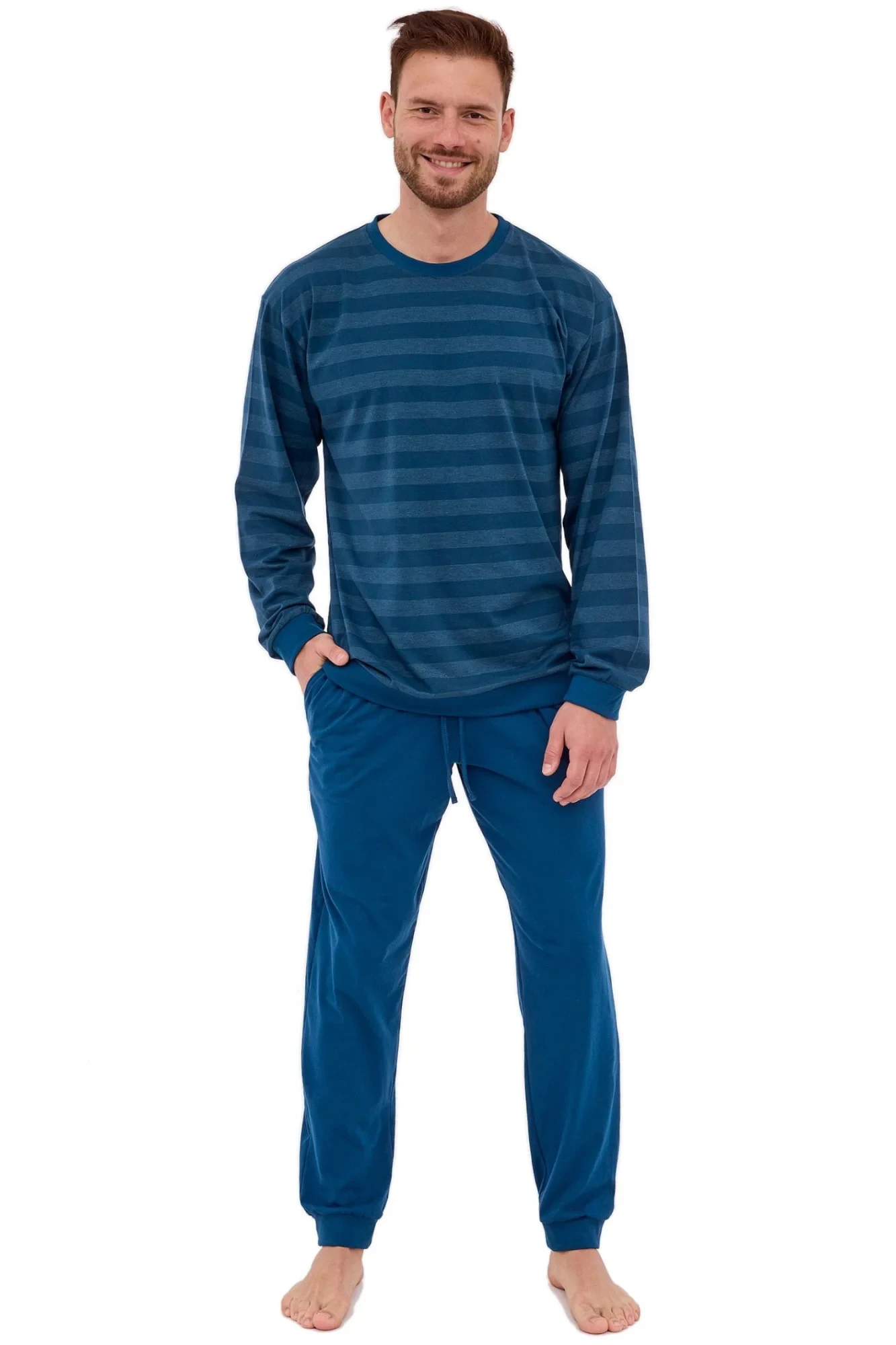 Pánské pyžamo 117/278 Loose CORNETTE - z vysoce jakostní bavlny - světle modré tričko s dlouhými rukávy - zdobené pruhy - pohodlné jednobarevné dlouhé kalhoty s kapsami