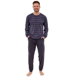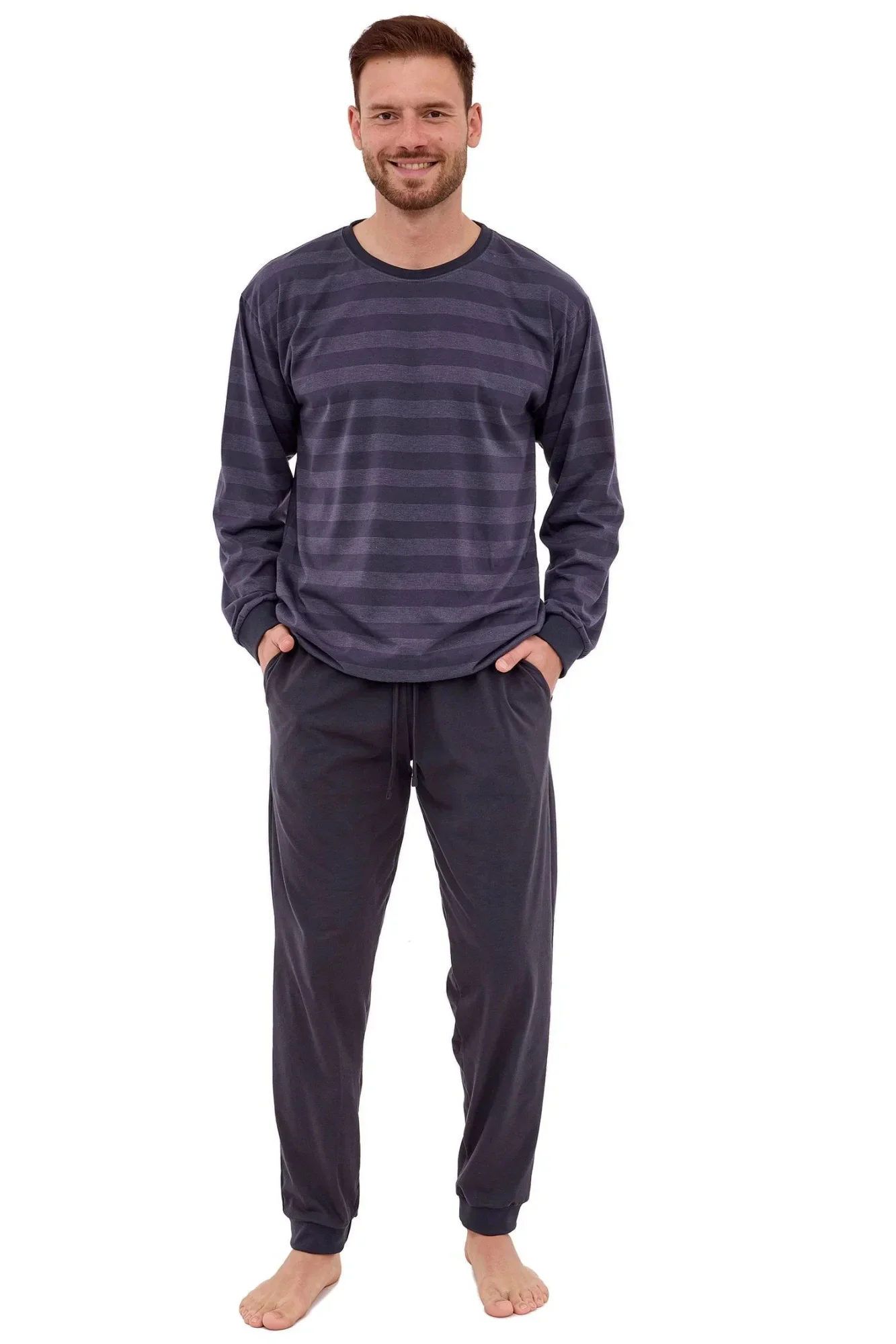 Pánské pyžamo 117/280 Loose CORNETTE - z vysoce jakostní bavlny - grafitové tričko s dlouhými rukávy - zdobené pruhy - pohodlné jednobarevné dlouhé kalhoty s kapsami