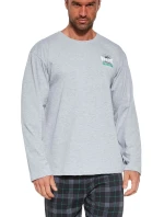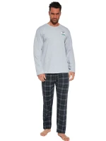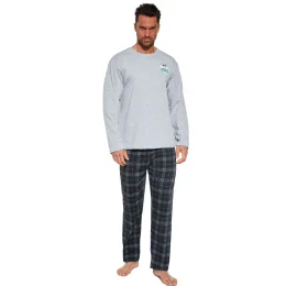 Pánské pyžamo 124/243 Adventure CORNETTE - je vyrobené z velmi kvalitní bavlny - šedé tričko s dlouhými rukávy - ozdobené potiskem - pohodlné kárované dlouhé kalhoty