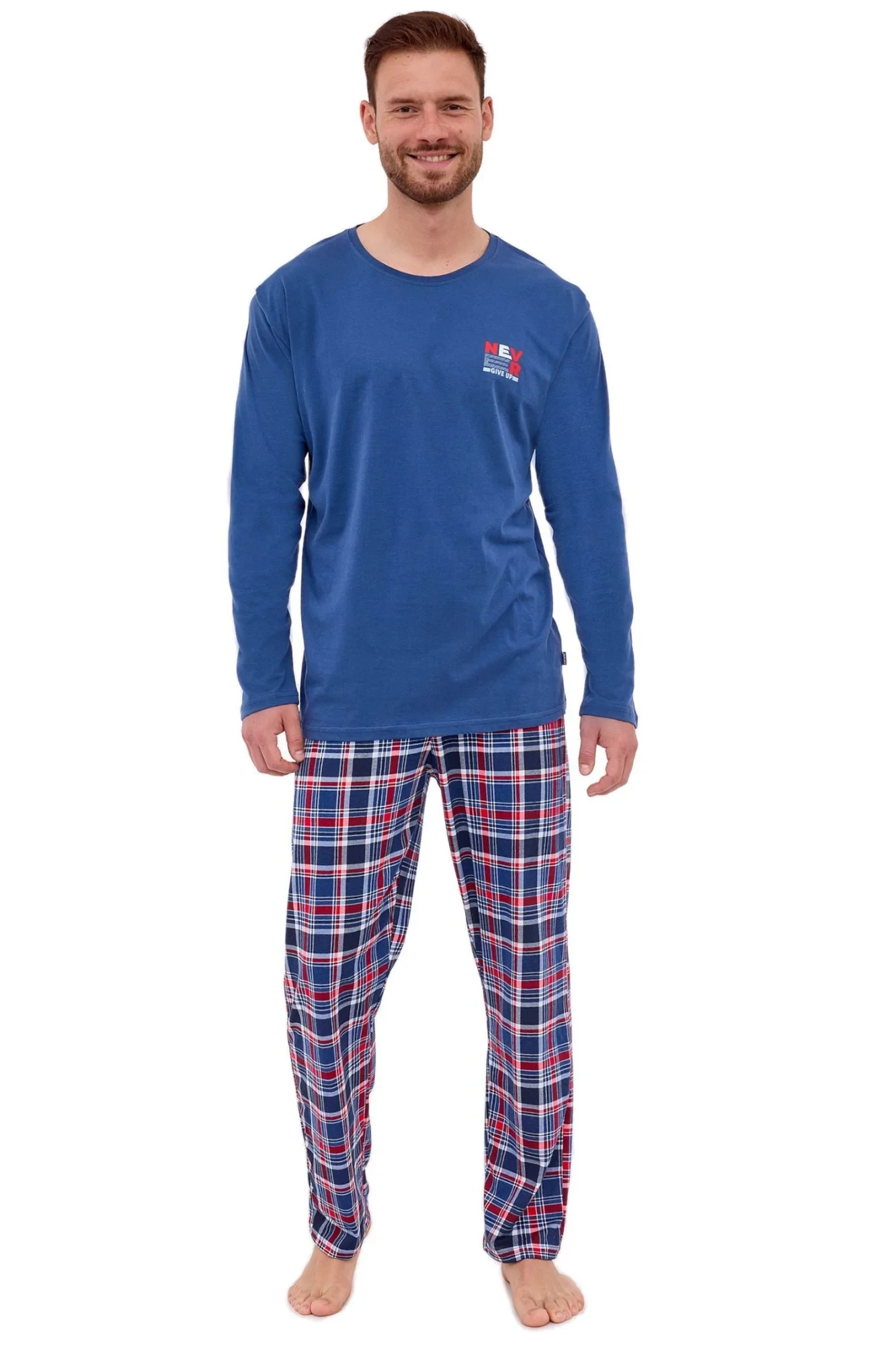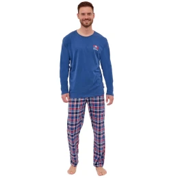 Pánské pyžamo 124/271 Never 2 CORNETTE - z vysoce jakostní bavlny - džínové tričko s dlouhými rukávy - na přední straně zdobené potiskem - pohodlné vzorované dlouhé kalhoty