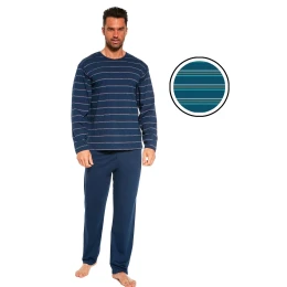 Pánské pyžamo 138/42 Various plus CORNETTE - světle modrá barva - je vyrobené z velmi kvalitní bavlny - pruhované tričko s dlouhými rukávy - pohodlné jednobarevné dlouhé kalhoty