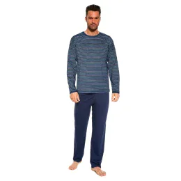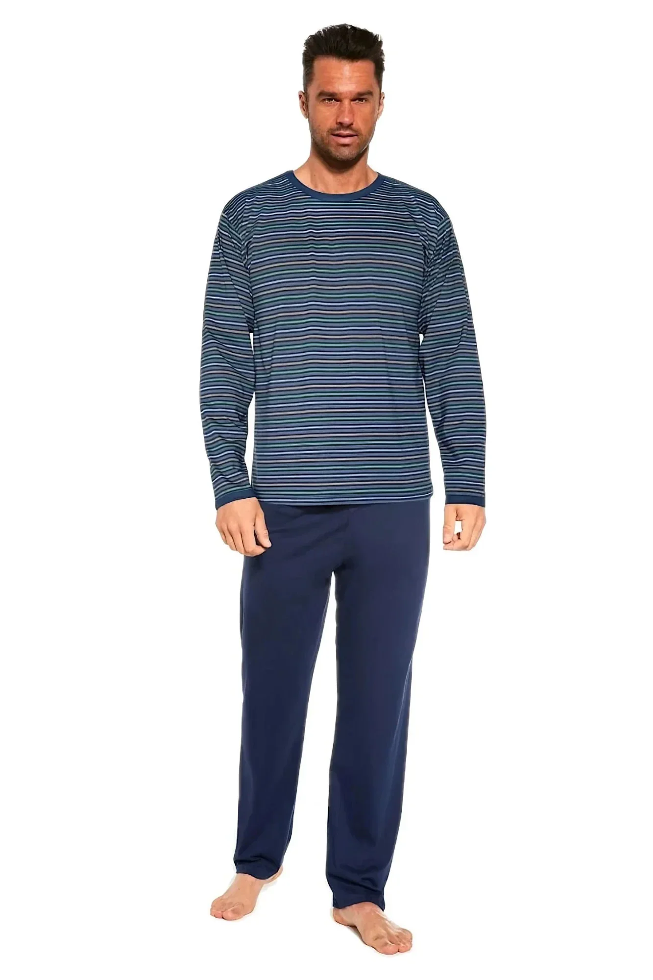 Pánské pyžamo 138/48 Various CORNETTE - z vysoce jakostní bavlny - pruhované tričko s dlouhými rukávy - pohodlné jednobarevné dlouhé kalhoty