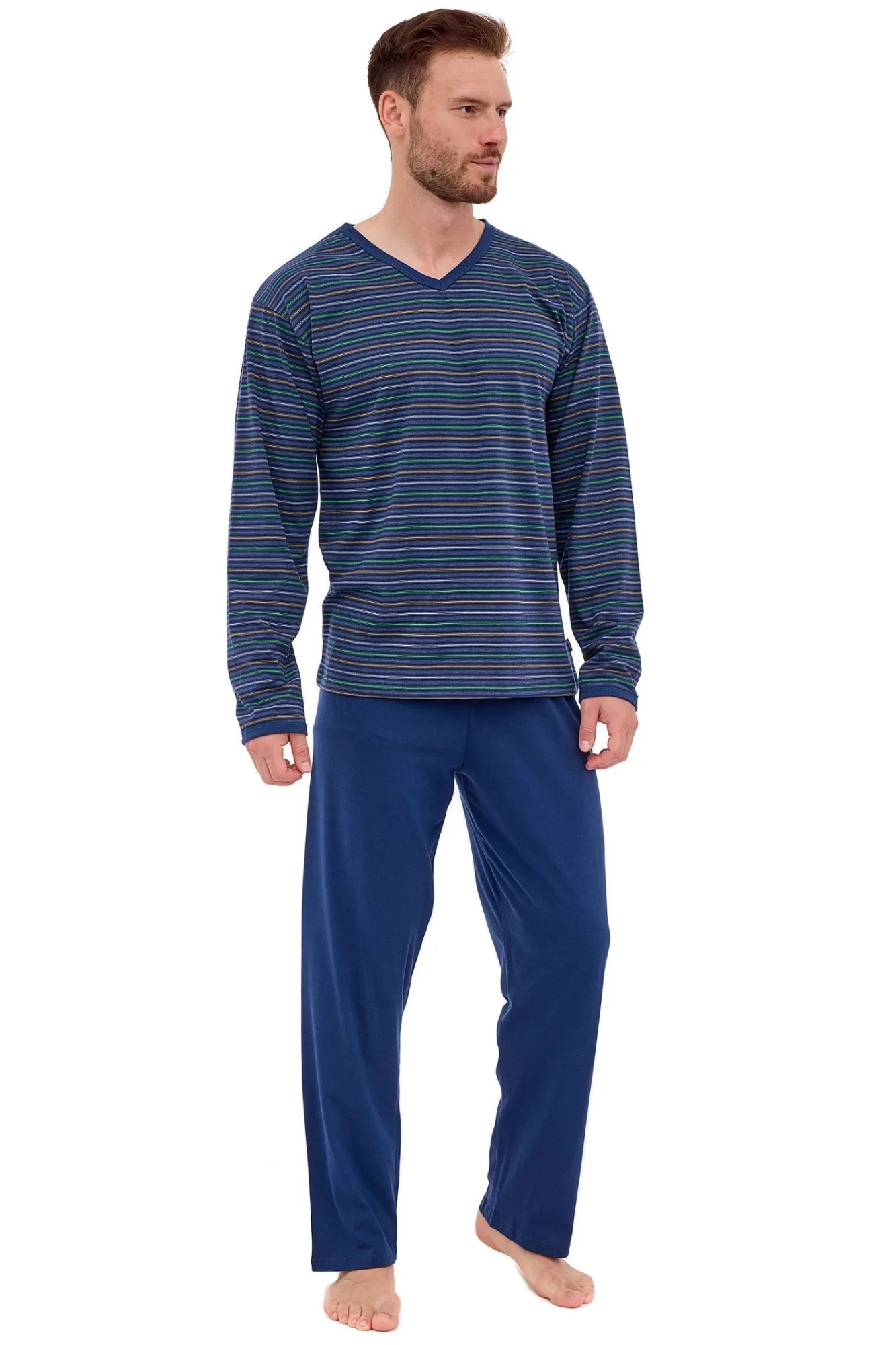 Pánské pyžamo 139/42 Various CORNETTE - tmavě modrá barva - z vysoce jakostní bavlny - pruhované tričko s dlouhými rukávy - pohodlné jednobarevné dlouhé kalhoty